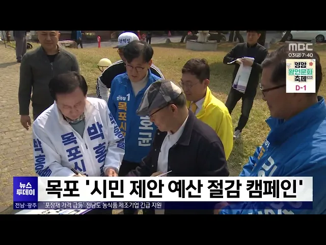 목포MBC TV편성표 05시 00분 테마기행 길(원주M) 06시 00분 기분 좋은 날(재) 07시 00분 MBC 뉴스투데이 주요뉴스 뉴스투데이 뉴스데스크 뉴스다시보기/제보 최옥수 예비후보, 무안군수 출마 선언 '100대 공약 제시' 최옥수 예비후보가 오는 6월 치러지는무안군수 선거에 출마를 공식 선언했습니다.최옥수 후보는 기자회견을 통해 교통과 복지, 교육 등이 담긴100대 공약을 제시하며무안의 발전을 위해 끝까지 책임지고 ... 뉴스데스크 198 민주당 목포시장 경선 후보자 토론... 뉴스투데이 182 강진원 군수 무소속 출마 예고..강... 뉴스데스크 170 달리던 SUV '펑'..보조배터리 화재... 뉴스데스크 160 할머니 아나운서, 할아버지 기술감... 뉴스데스크 149 '포장재 가격 급등' 전남도 농식품 제조기업 긴급 지원 뉴스투데이 41 전남도, 해외 유학 지원..오는 28일까지 '이공계' 대상자 모집 뉴스투데이 45 전남도 성장동력기획위, 국고사업 발굴 본격화 뉴스투데이 42 완도군청 역도실업팀, 전국 대회 메달 9개 획득 뉴스투데이 38 5월까지 '약물운전' 특별 단속..간이 검사 실시 뉴스투데이 44 목포 ‘시민 제안 예산 절감 캠페인’ 뉴스투데이 41 신정훈, '5대 포용·미래 정책' 발표…"약한 곳이 도시 수준 결정" 뉴스투데이 56 민형배, 전남광주통합특별시 '대한민국 문화수도' 비전 발표 뉴스투데이 57 3월 기온 9년째 평년 웃돌아..벚꽃 개화 앞당겨져 뉴스데스크 23 "2차 가해 막자" 전남 8개 상담소, 젠더폭력 공동 대응 뉴스데스크 37 함평서 SUV가 경운기 추돌..노부부 사망 뉴스데스크 51 국가AI컴퓨팅센터 해남군 건축허가 접수..7월 착공 뉴스데스크 60 장흥군 전 의원 등, 김성 장흥군수 예비후보 지지 선언 뉴스데스크 41 민주당 전남광주특별시장 본경선 돌입 3일간 투표 뉴스데스크 39 전남 최초 여자프로축구팀 창단.."목표는 플레이오프" 뉴스데스크 33 산불재난 '경계' 단계 격상..전남 화재 잇따라 뉴스데스크 33 달리던 SUV '펑'..보조배터리 화재로 바다 추락까지 뉴스데스크 160 강성휘·이호균 토론 맞대결..공약 대결 속 변별력 과제 뉴스데스크 107 '8조 교육 재정' 쥔 통합교육감..'혁신 vs 안정' 격돌 뉴스데스크 68 국가AI컴퓨팅센터 해남군 건축허가 접수..7월 착공 뉴스데스크 60 민주당 전남도당 "금품 제공·선거인 명부 유출 조사중" 뉴스데스크 55 함평서 SUV가 경운기 추돌..노부부 사망 뉴스데스크 51 장흥군 전 의원 등, 김성 장흥군수 예비후보 지지 선언 뉴스데스크 41 민주당 전남광주특별시장 본경선 돌입 3일간 투표 뉴스데스크 39 최신 뉴스 달리던 SUV '펑'..보조배터리 화재로 바다 추락까지 ◀ 앵 커 ▶달리던 SUV 차량에서폭발과 함께 불이 나탑승자가 탈출 과정에서 바다에 빠지는아찔한 사고가 발생했습니다.차량 내부에 있던 보조배터리가원인으로 지목됐는데,밀폐된 차량 안에서는더 큰 위험... 뉴스데스크 160 강성휘·이호균 토론 맞대결..공약 대결 속 변별력 과제 ◀ 앵 커 ▶더불어민주당 목포시장 경선에 나선강성휘 후보와 이호균 후보가 첫 합동토론회에서 맞붙었습니다.강성휘 후보는 신재생에너지를 활용한 주민 기본소득을, 이호균 후보는 소상공인을 위한 지원 ... 뉴스데스크 107 '8조 교육 재정' 쥔 통합교육감..'혁신 vs 안정' 격돌 ◀ 앵 커 ▶행정통합으로 처음 치러지는 통합교육감 선거 열기도빠르게 달아오르고 있습니다.전남·광주 통합특별시 출범에 따라최대 8조 원 규모로 예상되는 교육 예산을누가 어떻게 운영할지를 놓고후보 간... 뉴스데스크 68 국가AI컴퓨팅센터 해남군 건축허가 접수..7월 착공 해남군에 들어서는 국가AI컴퓨팅센터의 건축허가가 접수되면서 오는 7월 초첫 삽을 뜰 전망입니다.삼성SDS컨소시엄은 오늘(3) 해남군청에국가AI컴퓨팅센터 건립 건축허가를 접수했으며해남군 솔라시도 기... 뉴스데스크 60 TV 프로그램 prev next 어영차 바다野 첫,셋째주 오전 05:00 일 08시 00분 한과 흥이 묻어나는 뱃사람들의 소리, 어영차!갯가 사람들에게 논과 밭이 되는 황금어장, 바다 野! 어영차 바다野는 풍요로운 바다에서 건져 올린 싱싱한 삶의 모습을 담아냅니다. 푸르른 바다가 선사하는 건강한 해... 전국시대 화 수 목 금 07시 50분 전국 각 지역 소식을 안방까지생생하게 전해 드립니다.우리 주변 이웃들의 따뜻하고 감동적인 이야기와전국 곳곳에 숨겨진 별난 이야기, 별난 사람들, 다양한 생활정보까지폭 넓고 알찬 소식들이 가득합니다. 귀(歸)한 집 일 10시 00분 지역소멸 대응을 위해 정부는 귀농귀촌 지원정책을 쏟아내고 있다. 하지만 성공적으로 정착한 사례는 많지 않다. 귀농귀촌인의 상당수는 5년 내 다시 도시로 돌아가는 현실.성공적으로 지역에 정착한 선배 귀촌인들... 더보기 Radio 프로그램 prev next 더보기 디지털콘텐츠 매일매일 듣고 싶은 BEST 트로트 2시간 연속으로 듣기!! 시간순삭!!! #장윤정 #임영웅 #트... ♬트로트★모음듣기♪ 🎵놀러갈때~ 운전할때~ 언제든 들어도 좋은 신나는 TOP 인기트로트 ... ♬트로트★모음듣기♪ 하루 24시간내내 들어도 절대 안질리는 BEST 인기트롯 모음!! #신유 #장윤... ♬트로트★모음듣기♪ 언제 들어도 질리지 않는 인기트로트 메들리 53곡 릴레이로듣기!!!! #진성 #홍자 #트