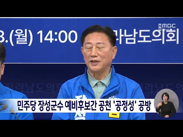 더불어민주당의 6·3 지방선거 후보 공천을 둘러싼 불공정 논란이 예비후보들 간 공방으로 번지고 있습니다.더불어민주당 장성군수 경선에 나선 김한종·박노원·유성수 예비후보는 어제(23)전남도의회에서 기자회견을 열고, 특정 후보가 피선거권 '예외 의결' 대상자로 결정된 근거 자료를 투명하게 공개하라고 주장했습니다....