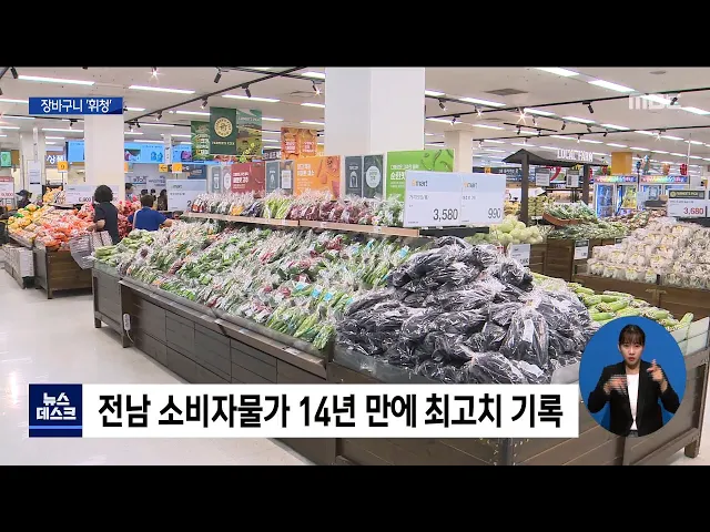 ◀ANC▶ 코로나19 유행이 감소세에 접어들고 차츰 경제가 회복되나 했는데 이젠 물가가 비상입니다. 전남은 14년만에 최대 폭으로 물가가 치솟았는데 지역 경제 전반에서 부담이 커지고있습니다. 양정은 기자가 취재했습니다. ◀END▶ 목포의 한 대형마트 정육 코너 선뜻 고기를 사는 사람을 찾기 힘듭니다. 이 마트에선 ...
