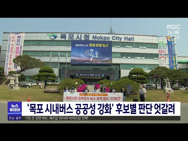 목포시내버스 공공성 강화에 대한 목포시장 후보들의 판단이 엇갈리고 있습니다. 시민대책위원회는 목포시장 후보 정책질의 내용을 토대로 세 후보 모두 노선 공영화, 교통약자 이동권 보장에 대해서는 찬성했지만, 버스회사 관리감독 방안 선제시와 시내버스 재정지원심의위원회 재구성 문제에 김종식 후보가 동의하지 않...