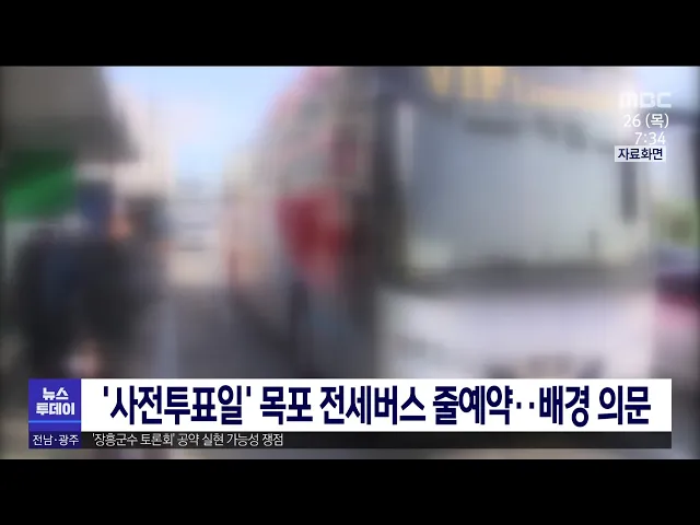 제8회 지방선거 사전투표가 시작되는 내일, 목포지역 대형 전세버스 업체 예약이 순조롭지 않아 그 배경에 의문이 제기되고 있습니다. 목포지역 13개 업체가 운영 중인 전세버스는 2백여 대인데 20여 대 이상 보유한 대형 업체 상당수는 27일 예약이 이미 끝났고 나머지 업체들도 예약 가능한 전세버스가 제한적인 것으로 ...