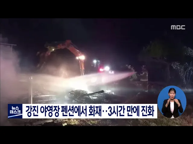 강진 야영장 펜션에서 화재..3시간만에 진화