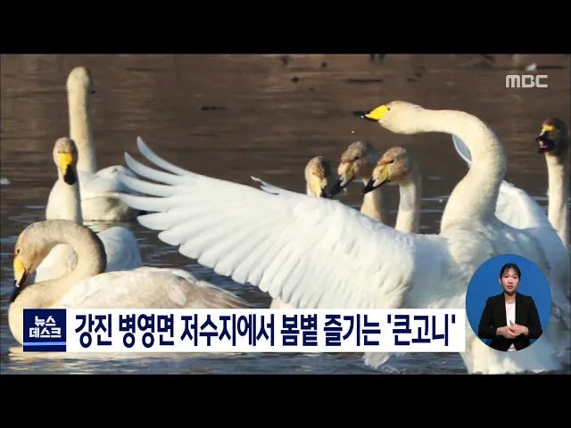 추위가 물러나고 따뜻한 봄 날씨가 이어지면서 천연기념물 제201-2호인 큰고니가 강진군 병영면의 한 저수지에서 카메라에 포착됐습니다. 큰고니 무리는 강진만에서 월동을 마친 뒤 따뜻한 날씨가 이어지자 강진군 병영면의 한 저수지로 장소를 옮겨 수초 뿌리를 먹이 삼아 여유로운 휴식을 즐기고 있습니다.