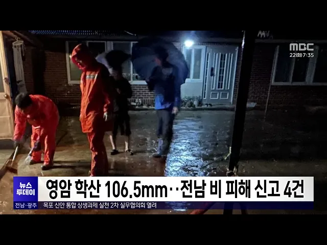 영암 학산 106.5mm..전남 비 피해 신고 4건