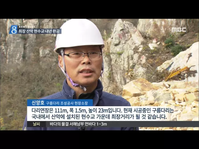 ◀ANC▶ 강진에서 완도로 가는 길목에 자리한 석문공원은 수려한 기암과 계곡이 절경입니다. 이 곳에 국내에서 가장 긴 산악 현수교가 만들어지고 있습니다. 문연철 기자가 보도합니다. ◀END▶ ◀VCR▶ 지폐 속 세종대왕을 꼭 빼닮은 바위, 이국적인 기암괴석과 깎아지는 듯한 절벽, 산자락을 휘감아도는 깊은 계곡물, ...