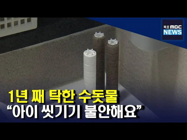 ◀ANC▶ 강진의 한 마을에서 1년 가까이 탁한 수돗물이 계속 나오면서 주민 피해가 이어지고 있습니다. 20년 이상 된 노후관이 원인이라고 하는데, 당장 해결책이 없다는 것이 문제입니다. 김진선 기자입니다. ◀END▶ ◀VCR▶ 흙탕물처럼 진한 갈색으로 흘러나오는 수돗물. 강진군의 한 마을 아파트 주민이 촬영한 겁니...