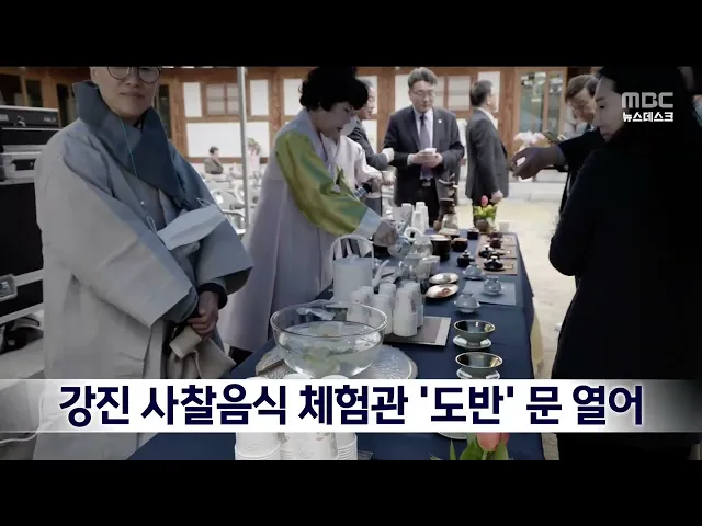 강진군이 오감통 시장 내 사찰음식 체험관 '도반' 개관식을 열었습니다. 사찰음식 체험관은 지방소멸대응기금 4억 원으로 기존 음식점 건물을 활용해 만들어졌으며 수시로 사찰음식 체험 수강생을 모집해 오는 24일부터 정상 운영할 예정입니다.