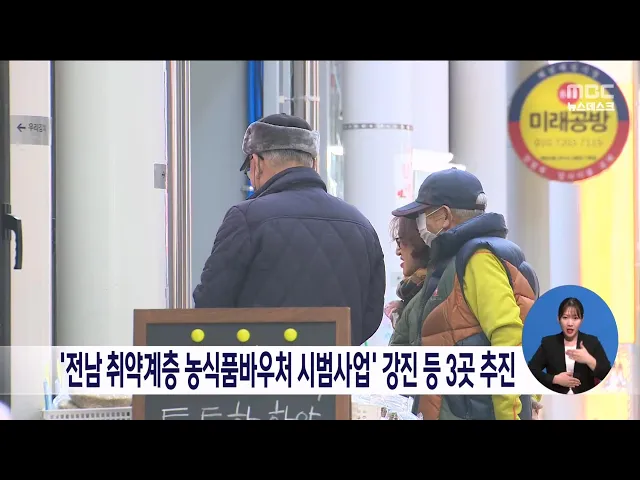 전라남도는 올해 취약계층을 대상으로 한 '농식품바우처 시범사업'을 강진군과 해남군, 장성군에서 추진합니다. 해당 지역 거주자 가운데 중위소득 50% 이하 기초생활수급자나 차상위계층은 바우처카드를 발급받아 1인 가구 기준 월 4만 원 가량의 농축산물을 구매할 수 있습니다.