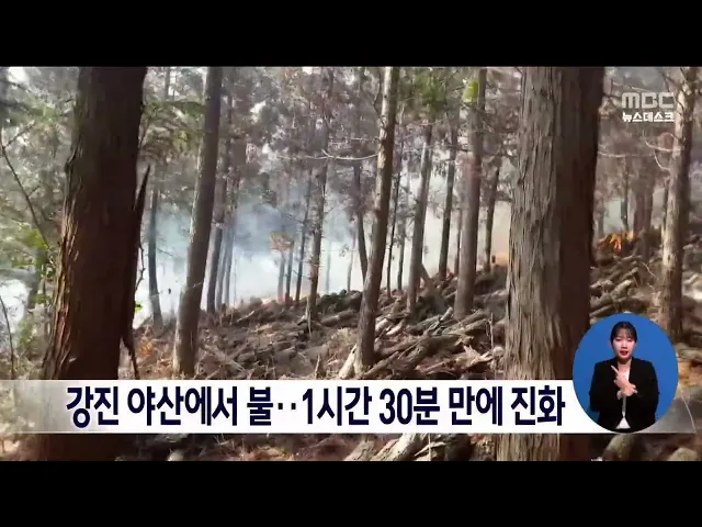 오늘 낮 2시 30분쯤 강진군 칠량면의 한 야산에서 불이 나 임야 500제곱미터를 태우고 1시간 30분 만에 진화됐습니다. 산림 당국은 표고버섯 자목 생산 시설 주변에서 처음 불이 시작된 것으로 보고 정확한 화재 경위를 조사하고 있습니다.