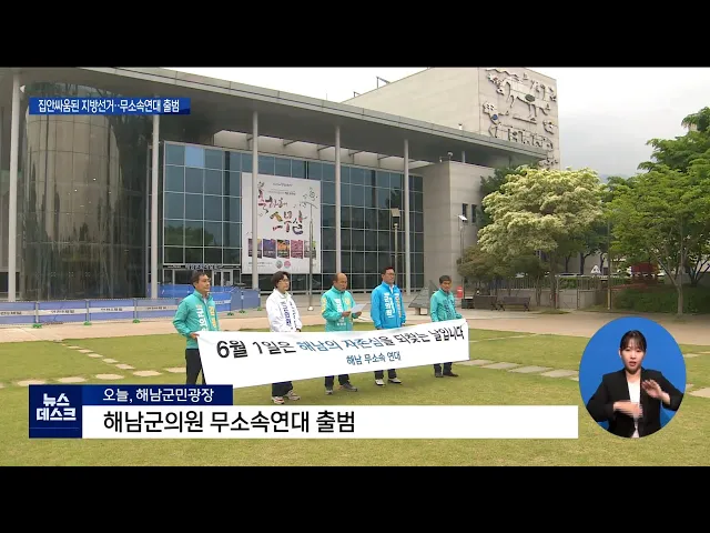 ◀ANC▶ 6.1 지방선거 후보등록이 마감되면서 본선 구도가 민주당 '집안싸움'으로 전락하고 있습니다. 공천 후유증으로 '무소속 연대'가 출범하는가 하면, 선택의 기회조차 없는 무투표 지역도 속출했습니다. 신광하 기자가 보도합니다. ◀VCR▶ 해남군 기초의원 후보 5명이 민주당 지역위원장을 강하게 비판하며 무소속...