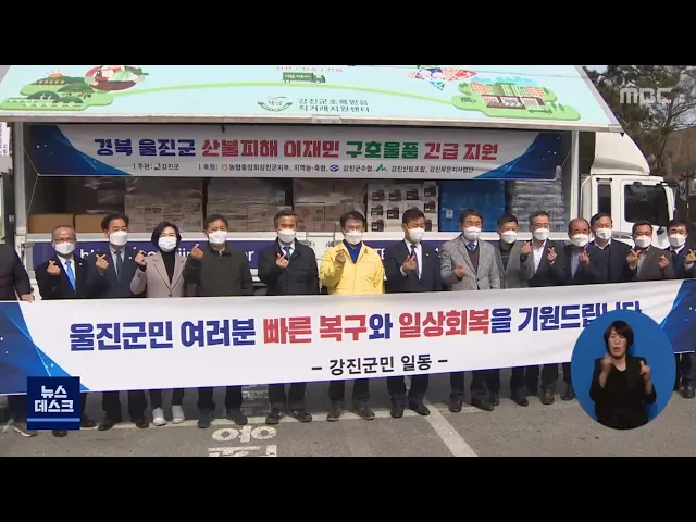 광주*전남 지역에서도 동해안 산불 피해 복구와 이재민 구호를 위한 물품 지원이 잇따르고 있습니다. 강진군은 강진 묵은지와 즉석밥 등 2천 1백만 원 상당의 구호물품을 경북 울진 산불 피해 주민들에게 기탁했습니다. 전라남도도 산불 피해 복구와 이재민 구호에 써달라며 경상북도와 강원도에 각 천만 원을 기탁했습니...