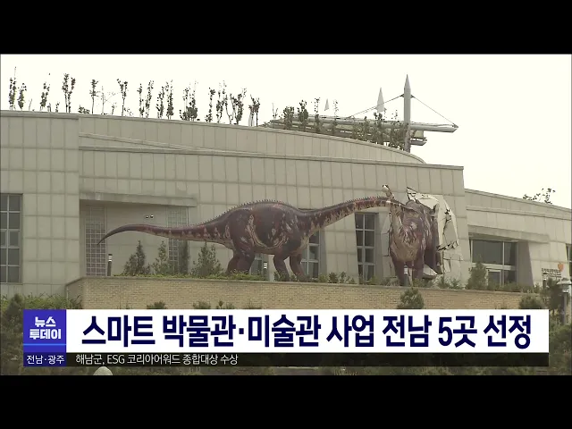 문화체육관광부가 공모하는 스마트 박물관·미술관 조성사업에 전남에서 5곳이 선정됐습니다. 스마트 박물관,미술관 구축사업 부문에는 강진 다산박물관과 영암 도기박물관 등 4곳이 선정됐으며 실감콘텐츠 제작·체험존 부문에서는 해남 공룡박물관이 선정됐습니다. 스마트 박물관과 미술관 조성사업은 인공지능과 가상현실...