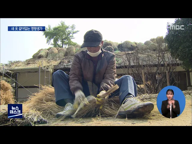 국가지정 중요민속문화재 252호로 지정된 강진 영랑 김윤식생가에서 새로 만든 이엉으로 안채 지붕을 잇는 작업이 진행돼 눈길을 끌고 있습니다. 가을 추수가 끝나고 해마다 교체되는 초가이엉은 긴 볏짚을 계약재배로 확보하고 사라져가는 이엉 잇기 전통 기술을 보전,양성하는 차원에서 지역 주민들이 참여하고 있습니다...