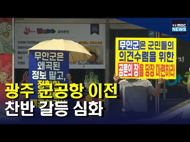 ◀ANC▶ 광주 군공항 이전 문제가 전남 곳곳을 들썩이게 하고 있습니다. 무안국제공항이 있는 무안군은 절대 반대 입장을 유지하고 있는 반면 함평군에 이어 고흥군 일부 주민들까지 유치전에 뛰어들었습니다. 박종호 기자입니다. ◀END▶ ◀VCR▶ 광주 군공항 이전과 전남지역 공항 활성화 방안을 주제로 MBC 특집 대담...