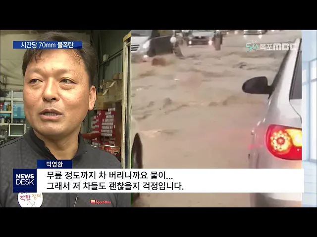 (앵커) 이처럼 뒤늦게 내린 집중호우에 광주와 전남 중북부 지역에서도 큰 피해가 이어졌습니다. 계속해서 우종훈 기자입니다. (기자) 마치 강처럼 변해버린 왕복7차선 도로를 차량들이 물보라를 일으키며 지나갑니다. 고가도로의 아랫부분이 잠겨 버린 백운광장엔 차량과 행인들이 어쩔 줄 몰라 쩔쩔매고 있습니다. 시간당...