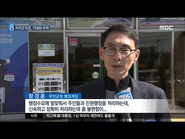 ◀ANC▶ 문재인 정부의 지방분권 국정기조 속에, 조직과 정원 관리 권한이 자치단체로 부여됐습니다. 탄력적 조직운영이 가능해진 반면, 자치단체장의 전횡을 불러올 거란 우려도 나오고 있습니다. 양현승 기자입니다. ◀END▶ ◀VCR▶ 무안군 인구는 8만2천명으로 군단위 중 전남에서 최고. 공무원 한 사람당 주민 수...