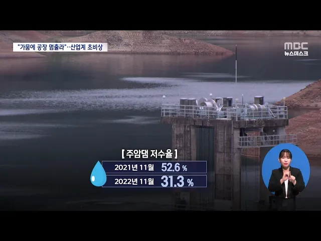 ◀ANC▶ 가뭄에 석유화학과 정유, 철강업체들이 밀집한 국가산업단지도 비상이 걸렸습니다. 지금 같은 상황이 계속되면 내년 상반기에는 공장 가동에 차질이 빚어질 수 있어 관계기관들이 대책을 고심하고 있습니다. 문형철 기자입니다. ◀VCR▶ 지상 5층 높이의 건물에서 엄청난 양의 물이 쉴 새 없이 쏟아집니다. 석유...