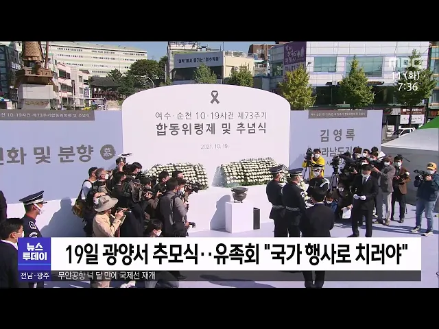 제74주기 여순사건 합동 추념식을 앞두고, 광양과 여수, 순천 등 6개 시·군과 여순사건유족회가 국가 지원 확대와 희생자 명예 회복을 위한 공동 건의문을 대통령실, 국회에 전달했습니다. 건의문에는 여순사건에 대한 정부와 국회의 관심과 함께 합동 추념식에 대통령, 국회의장, 국회 여·야 대표 등이 참석해달라는 내용...