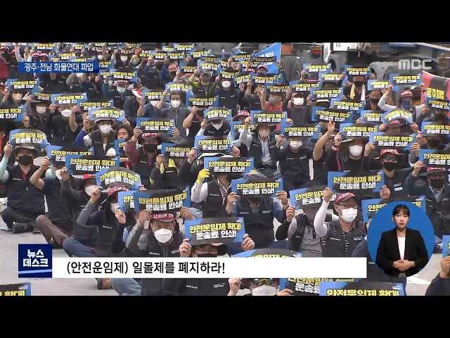◀ANC▶ 광주전남지역에서도 화물연대 노동자들이 '안전운임제'의 확대와 유지를 주장하며 오늘부터 파업에 돌입했습니다. 노조와 국토부 모두 강경한 입장인 가운데 파업이 장기화되면 자칫 물류 대란으로 이어질 가능성이 크다는 분석입니다. 강서영 기자입니다. ◀VCR▶ 오늘(7)부터 전국의 화물연대 노동자들이 총 파...