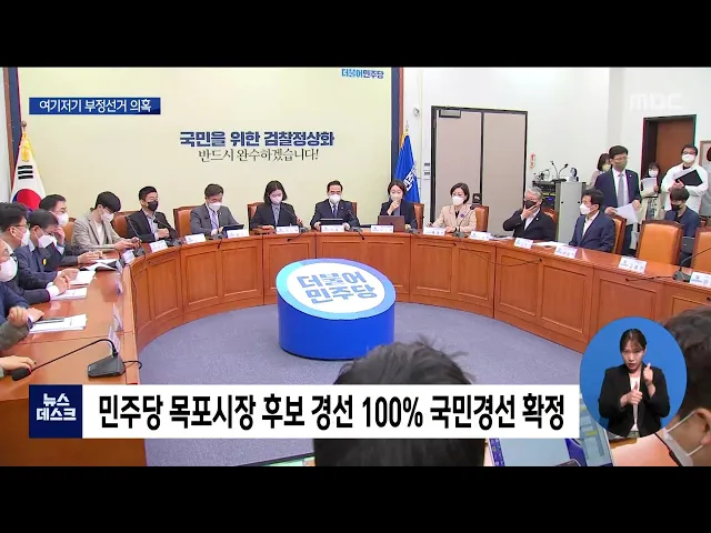 ◀ANC▶ MBC보도로 중단됐던 민주당 목포시장 경선이 오염된 권리당원을 빼고 100% 국민경선으로 치러집니다. 경선을 치른 곳에서는 온갖 잡음이 터져나오고 있지만, 민주당은 그저 선거 일정 소화에 급급하고 있습니다. 양현승 기자입니다. ◀END▶ ◀VCR▶ 민주당 비상대책위원회가 목포시장 후보 경선을 100% 국민경...