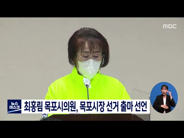 목포시의회 최홍림 부의장이 목포시장 선거 출마를 공식 선언했습니다. 무소속 최홍림 목포시장 예비후보는 "항구도시라는 이름은 여수,광양에도 미치지 못하고, 목포가 5대도시라는 영예가 사라진 지방의 작은도시로 쇠락을 거듭하고 있다"며, 목포 첫 여성시장이 되어 시민을 위한 시정을 하겠다고 밝혔습니다.