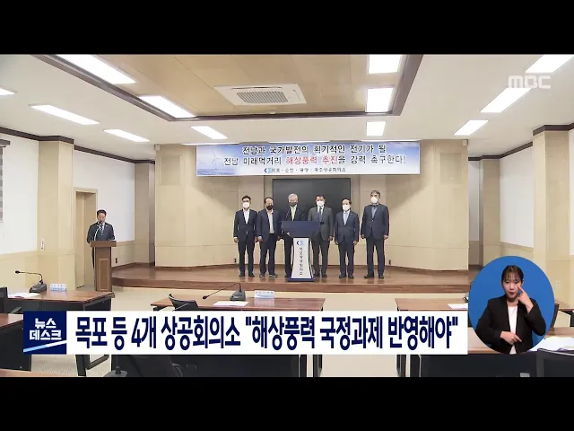 최근 윤석열 대통령 인수위가 '해상풍력 신중 검토 의견'을 발표한데 대해 목포와 순천, 광양, 광주 등 4개 상공회의소가 해상풍력 사업을 국정 과제에 반영해줄 것을 촉구했습니다. 이들은 공동성명을 통해 깊은 유감의 뜻을 밝히고, "해상풍력은 지역의 미래 신산업을 넘어 국가 에너지 안보를 위해서도 반드시 필요하다...