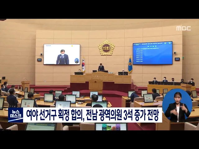 여야가 6.1지방선거 선거구 획정에 합의하면서, 전남은 광역의원 정수가 3석이 늘 전망입니다. 국회 정치개혁특위 간사 합의에 따라 전남에서는 강진 선거구를 2개에서 1개로 축소하는 대신 순천 선거구 2개, 광양과 나주 선거구를 1개씩 늘리는 것으로 알려졌으며, 현재 58명의 전남도의회 정수는 61명으로 바뀌게 됩니다....
