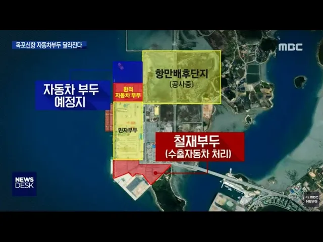 ◀ANC▶ 목포신항이 자동차부두로서 면모를 더 갖춰나가고 있습니다. 올해부터 2자동차부두 공사에 착수해 오는 2023년에 완공할 계획입니다. 최진수 기자가 보도합니다. ◀END▶ ◀VCR▶ 최근 목포신항에서 처리한 자동차 물동량은 4,5백만톤을 넘어섰습니다. 물동량은 늘었지만 환적 자동차부두와 수출 자동차부두가 ...
