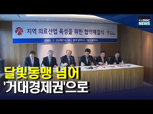 ◀ 앵 커 ▶광주와 대구를 잇는 달빛철도 특별법통과로 한층 더 강화된달빛동맹이 이제는 산업동맹을 향한첫발을 뗐습니다.광주시와 대구시는남부거대경제권을 조성해수도권에 버금가는 경쟁력을 확보한다는계획입니다.보도에 김영창 기자입니다.◀ 리포트 ▶달구벌과 빛고을이 손을 잡고 협력하기로 한 것은 2009년으로 거슬러...