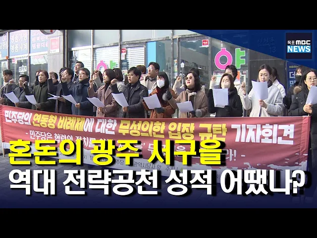 ◀ 앵 커 ▶민주당이 양향자 의원이 탈당한 광주 서구을을 전략선거구로 발표한 이후민주당이 전략공천할 가능성이 큰 것으로알려지면서 예비후보들과 시민단체를 중심으로 반발이 이어지고 있습니다. 그렇다면 그동안 역대 총선에서민주당이 광주지역 후보를 전략공천한 성적표는 어땠는지 살펴봤습니다. 주현정기자가 보도...