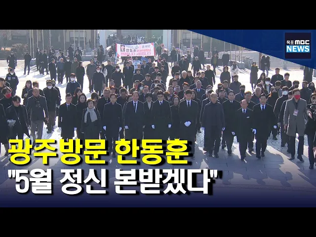 ◀ 앵 커 ▶한동훈 국민의힘 비상대책위원장이 오늘(4) 광주를 찾았습니다.5·18정신을 헌법 전문에 수록하고, 오월정신을 본받는 정치를 하겠다고 밝혔습니다.민주당은 한 위원장의 행보를 평가절하했습니다.주현정기자입니다.◀ 리포트 ▶취임 후 전국을 돌고 있는 한동훈 국민의힘 비상대책위원장이 광주를 찾았습니다.국립5·...