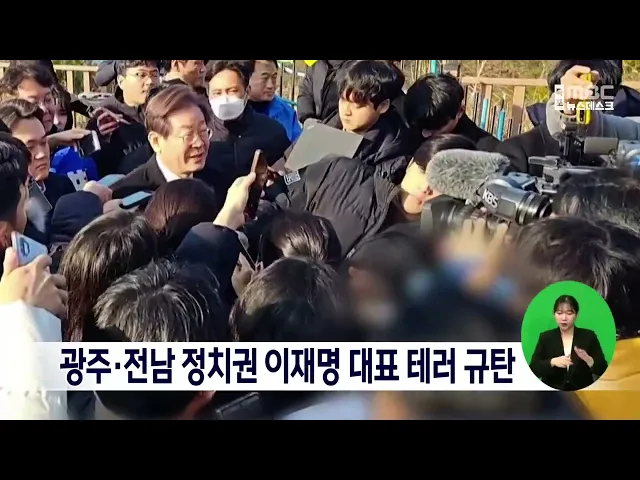 이재명 더불어민주당 대표가 부산에서 괴한으로부터 피습을 당한 가운데 지역 정치권도 한목소리로 테러를규탄했습니다. 강기정 광주시장은 오늘 시청 정례조회에서"어떤 테러도 동의할 수 없고 배격해야 한다."고 말했고 이병훈 민주당 광주시당 위원장도 5·18묘지를 참배한 자리에서 철저한 진상규명을 요구하면서 "이럴 ...