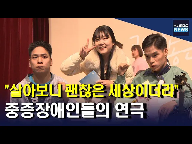 ◀ 앵 커 ▶ 중증 장애인들이 홀로 서는 과정을 담아낸 연극을 선보였습니다.장애인들이 시설에서 나와 비장애인들과 함께 살아가는 과정에서일어난 크고 작은 일들을 담았는데,관객들의 반응이 매우 좋았다고 합니다. 연극 제목은 '살아보니 괜찮은 세상이더라'입니다.천홍희 기자가 다녀왔습니다. ◀ 리포트 ▶◀ SYNC ▶"그렇...