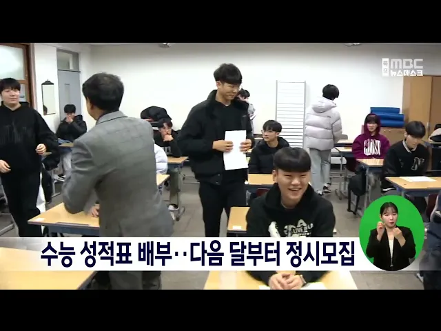 대학수학능력시험 개인별 성적 통지표가 배부됨에 따라 수험생들의 대입 정시모집 준비가 시작됐습니다.광주,전남 일선 고등학교에서는 지난 달 16일에 치러진 수능 시험의 과목별 표준점수와 백분위, 등급이 기재된 성적표를 출력해 배부하고 정시지원 전략 등의 유의사항을 전달했습니다.내년도 대입 수시모집 합격자 발...