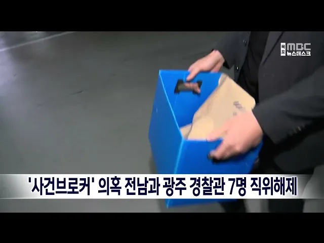 사건브로커 의혹으로 수사를 받고 있는전남과 광주경찰청 소속 경찰관 7명이 직위해제됐습니다. 전남지방경찰청은 '사건 브로커' 62살 성 모씨를 구속기소한 광주지검으로부터 최근 압수수색을 받은경정 2명과 경감 3명 등 현직 간부 5명을직위해제했습니다. 광주경찰청도 같은 혐의로 검찰로부터 수사개시 통보를 받은경...