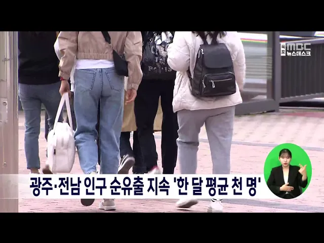 광주,전남에서 한달 평균 천 명의 인구 순유출을 기록하는 등인구감소가 지속되고 있는 것으로 나타났습니다호남지방통계청에 따르면올 3분기 순유출 인구는광주가 천 173명, 전남은 천 606명이었습니다.지난 1,2분기까지 합치면광주에서 6천 484명, 전남에서 2천 409명의인구 순유출을 기록해한달 평균 천 명 정도가 빠져...