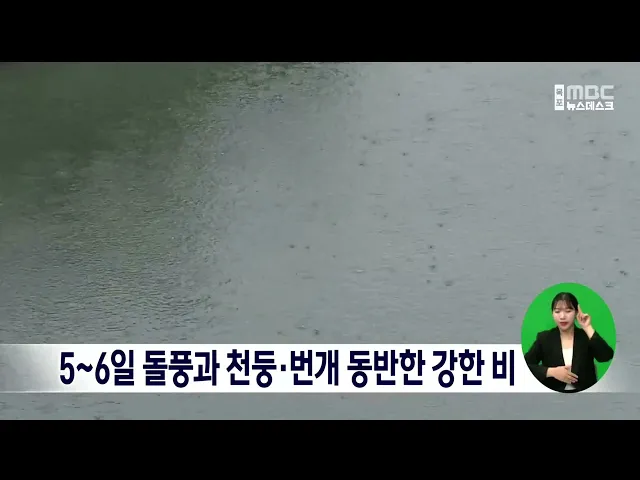 일요일인 5일부터 이틀 동안광주*전남 지역에 천둥 번개를 동반한많은 비가 내릴 것으로 예보됐습니다. 광주지방기상청은비구름대 발달로 광주와 전남에 내일까지 5~20mm의 비가 내린 뒤 오는 5일부터 6일까지 시간당 20~40mm의 강한 비가 내릴 것으로 전망했습니다. 기상청은 이 기간 바람도 매우 강하게 불 것으로 보고낙...