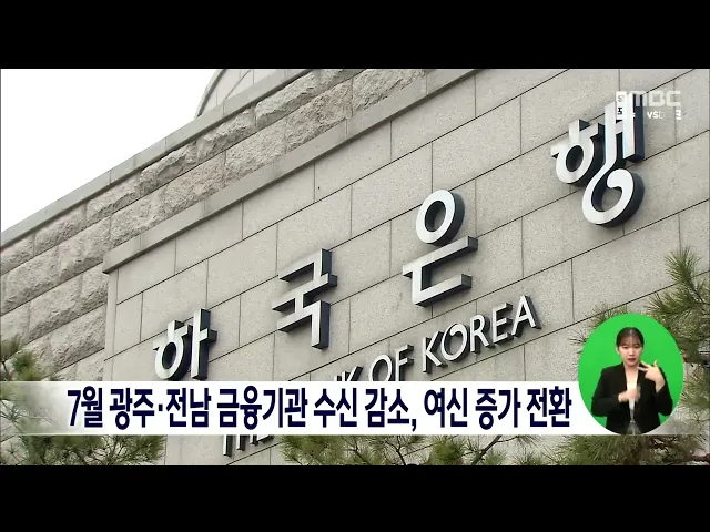 7월 광주·전남 금융기관의 수신은 전월대비 감소로 돌아선 반면, 여신은 증가로 전환됐습니다.한국은행 광주전남본부에 따르면 지난 7월 광주·전남지역 수신은 새마을금고 수신이 큰폭으로 감소하는 등 2조여원 감소했고,여신은 3330억원으로 기업 대출 등이 늘면서 전월 감소에서 증가로 전환됐습니다.