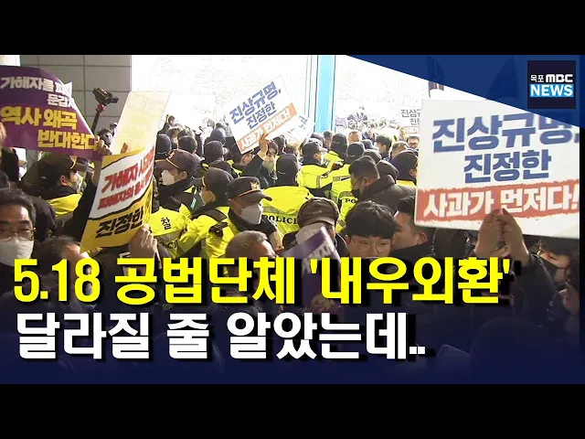 ◀ 앵 커 ▶5.18부상자회 등 5월 3단체가지난해 오랜 숙원이었던 공법단체가 됐습니다.이전보다 지위가 격상되면서조직이 안정될 것이라 기대가 됐지만최근 5.18 단체를 보면 폭로전과 고소 고발전이 난무하고 있습니다.게다가 시민단체와의 갈등도 계속 이어지면서 말 그대로 '내우외환'의 상황입니다. 임지은 기자가 취재했...