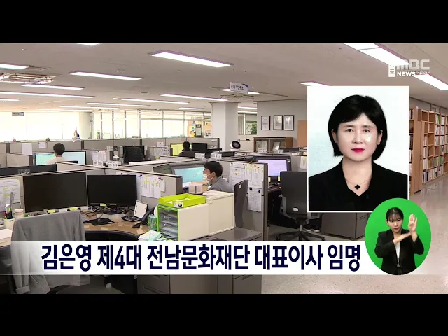 전라남도는전남문화재단 제4대 대표이사에 김은영 전 광주비엔날레 정책연구실장을 임명했습니다.김은영 대표이사는 “ 함께 여는 미래를 비전으로 건강한 지역 문화예술생태계를 구축하고지역성과 세계성을 연결하는 문화통합의 플랫폼으로 재단이 자리매김하도록 노력하겠다고 밝혔습니다.