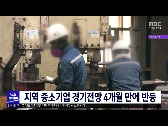 광주,전남 중소기업들의 경기전망지수가 4개월 만에 반등한 것으로 나타났습니다. 중소기업중앙회 지역본부가 지역 중소기업 207곳을 대상으로 경기전망을 조사한 결과, 다음 달 업황전망지수가 85로 전달에 비해 8.1포인트 상승했습니다. 지역별로는 광주가 전달보다 2.5 포인트 상승했고, 전남은 13.5 포인트 뛰었는데, ...