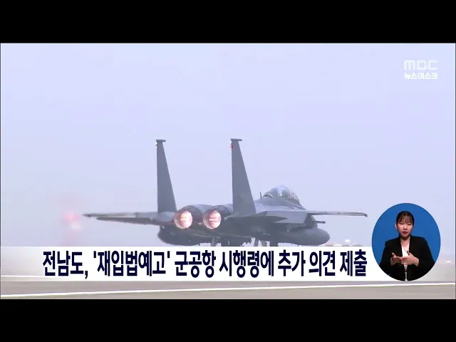 전라남도는 국방부가 재입법예고한 '광주 군공항 이전과 종전부지 개발을 위한 특별법' 시행령 제정안에 전남도의 요구사항이 반영되지 않았다며 추가 의견을 제출하겠다고 밝혔습니다. 전라남도는 지난 5월 입법예고됐던 시행령에는 전남도가 요구한 '이전지역 지원에 관한 규정'이 전무했다며 이전 주변지역 지원계획에 ...