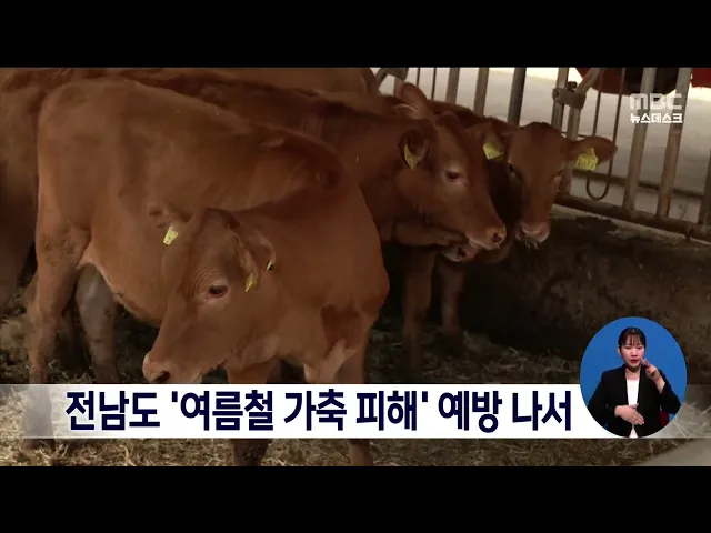 전라남도는 폭염과 태풍,호우 등 여름철 재해로 인한 축산농가 피해 최소화를 위해 다양한 대책을 마련하고 있습니다. 전라남도는 재해 취약지역 축산농가 2천242호를 대상으로 축사시설, 전기설비, 냉난방시설 등을 사전 점검하고 있으며 가축재해보험 가입에 100억원을 투입해 축산농가 경영안정을 지원할 방침입니다. 광...
