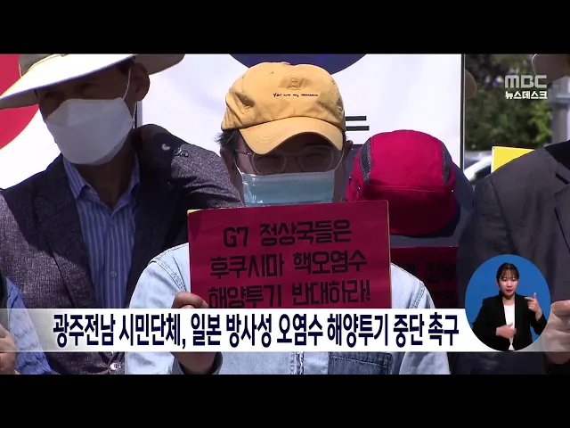 광주·전남 시민사회단체들이 일본의 방사성 오염수 해양투기 중단을 촉구했습니다. 시민사회단체들은 기자회견을 열고 일본이 오는 7월 방사성 오염수를 바다에 버리면 인근 어업과 어민 등이 큰 피해를 입을 것이라고 주장했습니다. 또, 일본이 G7 정상회의에서 방사성 오염수 해양투기를 국제적으로 인정받으려 한다며 윤...