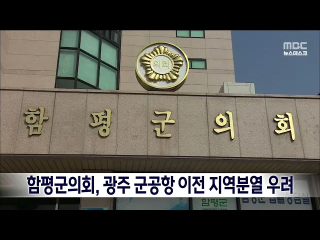 함평군의회가 광주 군 공항 이전사업과 관련해 군민들의 찬반 대립이 격화되는 상황을 우려하고 나섰습니다. 함평군의회는 최근 이와 관련해 함평군와 간담회를 갖고 군민간 갈등이 고조와 잘못된 정보의 확대·재생산으로 사회적신뢰가 무너지고 행정력이 낭비되고 있다며 집행부가 군민 통합을 위한 행정을 추진해 줄 것...