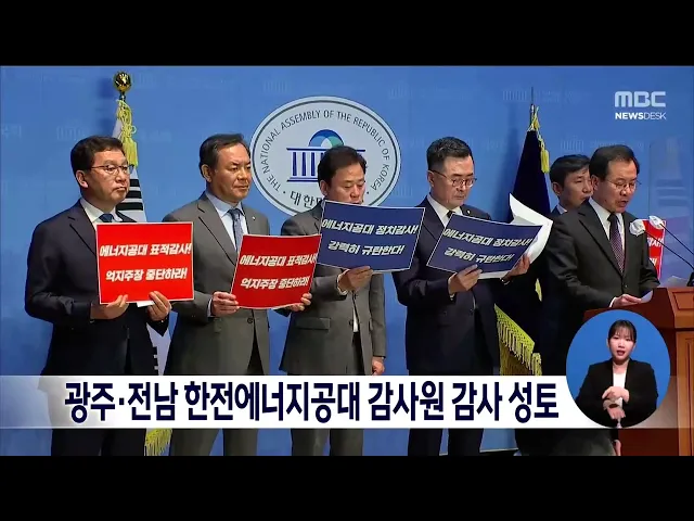 광주전남지역 국회의원들이 한 목소리로 한국에너지공대에 대한 표적 감사를 즉각 중단할 것을 촉구했습니다. 이들 국회의원은 오늘 국회 소통관에서 기자회견을 갖고 한국에너지공대까지 정치감사의 표적으로 삼았다며 보수단체의 허술한 청구취지만을 근거로 무리한 감사를 벌이는 것은 그야말로 정권의 입맛에 맞추는 ‘...