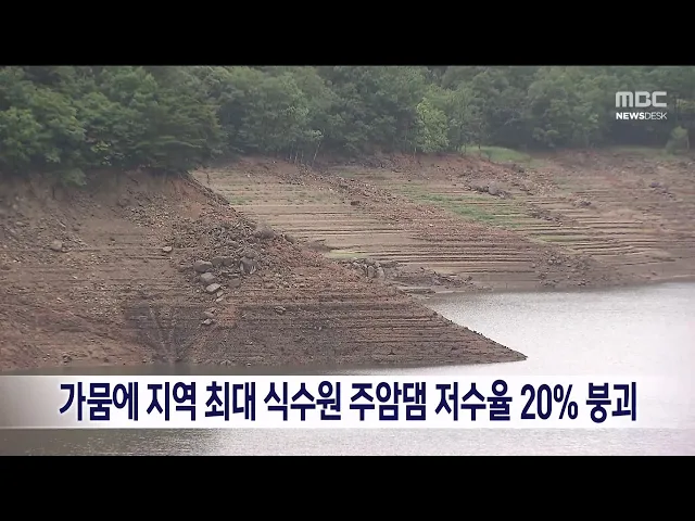 가뭄이 지속되면서 광주·전남 지역 최대 식수원인 주암댐 저수율이 20% 밑으로 떨어졌습니다. 오늘(5) 오후 1시 기준 주암댐 저수량은 9천1백만 톤, 저수율은 19.9%로 지난해 12월 저수율 30%가 붕괴된 지 2개월여 만에 10%가 줄었습니다. 기상청은 광주전남 지역 봄철 강수량이 평년에 비해 크게 늘지 않을 것으로 예보했...