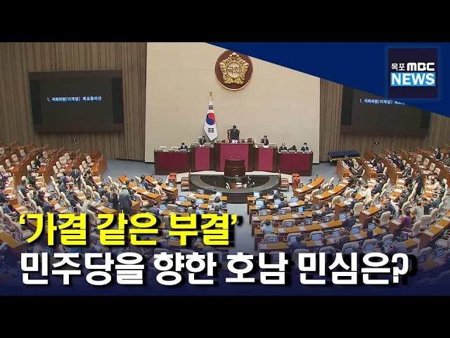 (앵커) 이재명 더불어민주당 대표의 체포동의안이 국회에서 ‘턱걸이’ 부결되면서 민주당의 텃밭인 광주*전남이 술렁이고 있습니다. 당내 이탈표 발생 원인과 책임소재 논란까지 일고 있는데, 밑바닥 민심은 어떤지, 주현정 기자가 들어봤습니다. (기자) 김진표 국회의장 (2월27일) “총 투표수 297표 중 가 139표, 부 138표,...