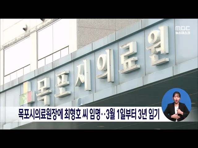 신임 목포시의료원장에 최형호 광주 수완행복한요양병원 진료원장이 임명됐습니다. 최 원장은 조선대학교 의학과와 가정의학과, 흉부외과 교수로 재직한 후 의과대학장 등을 역임했습니다. 신임 최형호 목포시의료원 원장의 임기는 3월 1일부터 3년간입니다.
