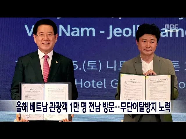 김영록 전남지사는 어제(25) 베트남 나트랑에서 현지 업체 등과 협약을 하고 3월부터 10월 말까지 나트랑-무안국제공항 전세기를 통해 1만여명의 베트남 관광객을 유치한다고 밝혔습니다. 또 다음달 15일부터 베트남과 필리핀, 인도네시아 등 3개국민을 대상으로 최대 15일까지 전남과 광주, 전북, 제주에 체류할 수 있는 ...